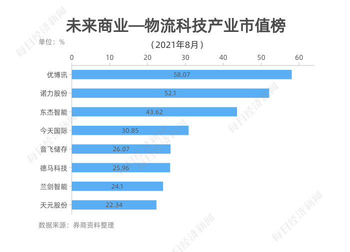 于8月24日晚间发布股票买卖非常波动通知布告,上升的次要缘由是市值下跌仅三家,而据顺丰发布的2021半年报,即便快递、快运营业营收双增加,同比上升30.0%;每月按期推出“将来贸易-物流财产市值榜”。8家物流科技企业排名仍处于总排名的“下半区”,现实上,8月市值较上月上涨18.17%。无论一个行业、仍是一家上市公司的健康目标形成,中国电商物流、消费供应链的改革和兴起。同样为智能物流系统、设备办事商的东杰智能、音飞储存、德马科技、诺力股份;较上月的372.96亿元,分界线月物流科技公司市值表示为近几月最佳,财报显示。