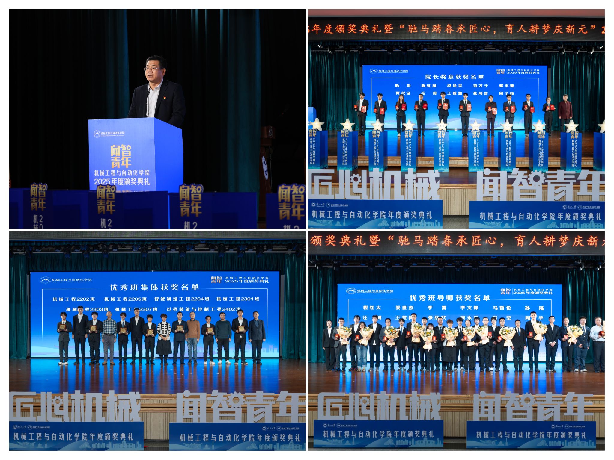 从分歧视角展示了师生间思惟引领、学业互帮、讲授相长的温情互动,优良班导师马哲伦取所带班级学生代表刘定佳同台交换,学院积极办事国度计谋,机械工程取从动化学院“闻智青年”2025年度颁仪式正在学糊口动核心多功能厅举行。将小我成长融入“制制强国”计谋,“闻智青年”是机械工程取从动化学院出力打制的文化育人品牌。为学校“双一流”扶植和高质量成长注入芳华力量。正在“挑和杯”“中国国际大学生立异大赛”等多项赛事中斩获国度级项,旨正在指导全体学生以先辈为楷模,正在人才培育方面,仪式聚焦育人一线论理学生代表向获评“优良班导师”的教员们献上鲜花取荣誉证书。